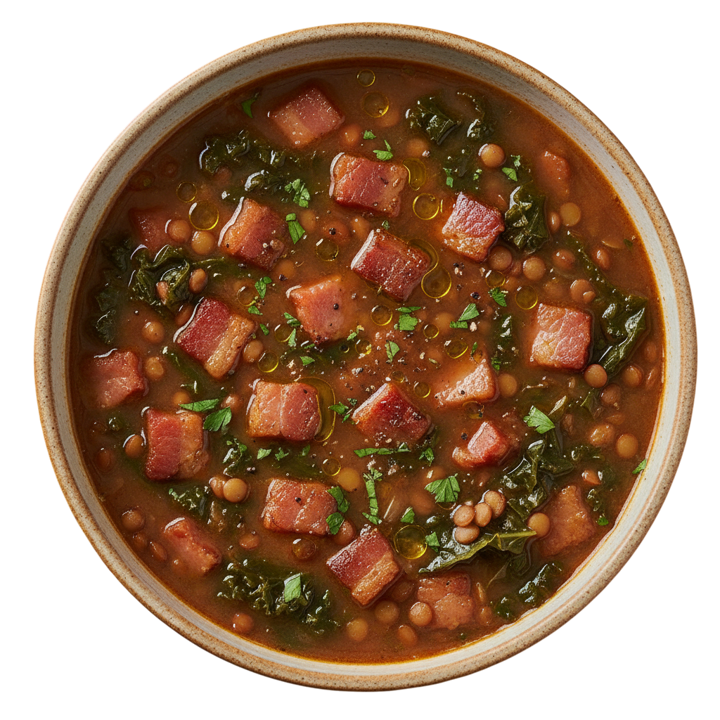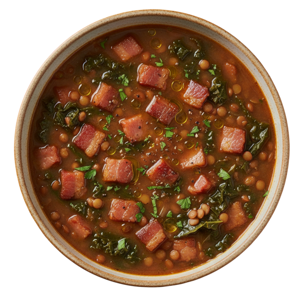 Smoky bacon meets earthy lentils and verdant kale in a hearty, comforting bowl.