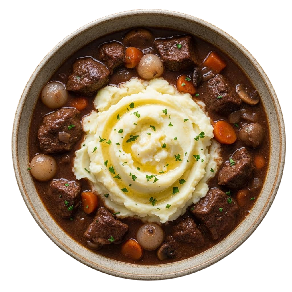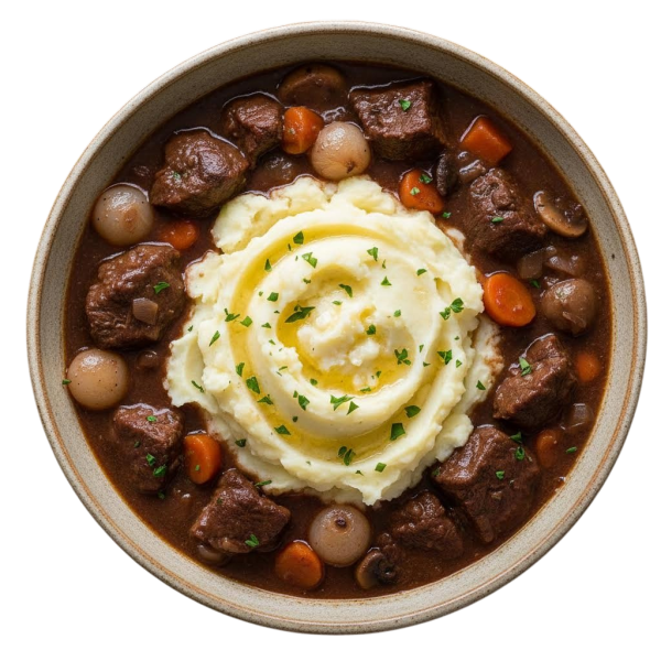 Beef from UK & EU (33%), Mushroom, Onion, Carrot, Red Wine - (#SULPHITES#), Bacon Smoked, made with UK & EU Pork [Pork, Water, Salt, Preservatives (Sodium Nitrate, Potassium Nitrate), Antioxidant (Sodium Ascorbate)] (5%), Maize Starch, HP Sauce [Tomatoes, Malt Vinegar from (#BARLEY#), Molasses, Glucose-Fructose Syrup, Spirit Vinegar, Sugar, Dates, Modified Cornflour, Flour (#RYE#), Salt, Spices, Flavourings, Tamarind], Tomato Paste, Beef Bouillon [Beef Stock (Water, Beef Stock, Onion, Tomato, Carrot Extract, Herbs, Spice, Garlic), Salt, Glucose Syrup, Flavourings, Maltodextrin, Yeast Extracts, Rapeseed Oil, Colour (Caramel), Sugar] (0.8%), Madeira (#SULPHITES#), Mushroom Powder, Garlic Puree, Thyme, Black Pepper Ground. Allergen Information
