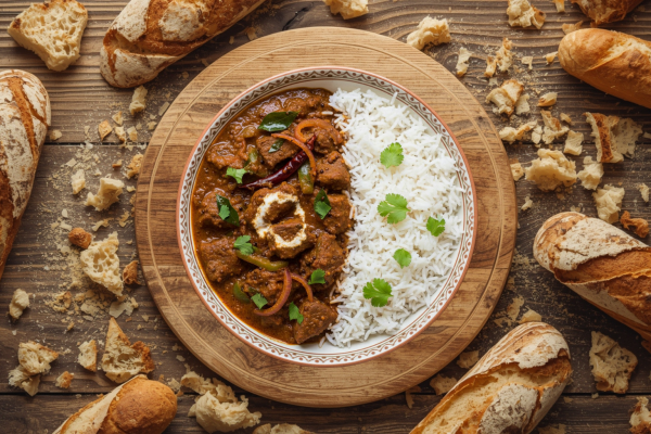 An intensely spiced and fiery Anglo-Indian curry with tender beef in a rich, tangy tomato sauce.
