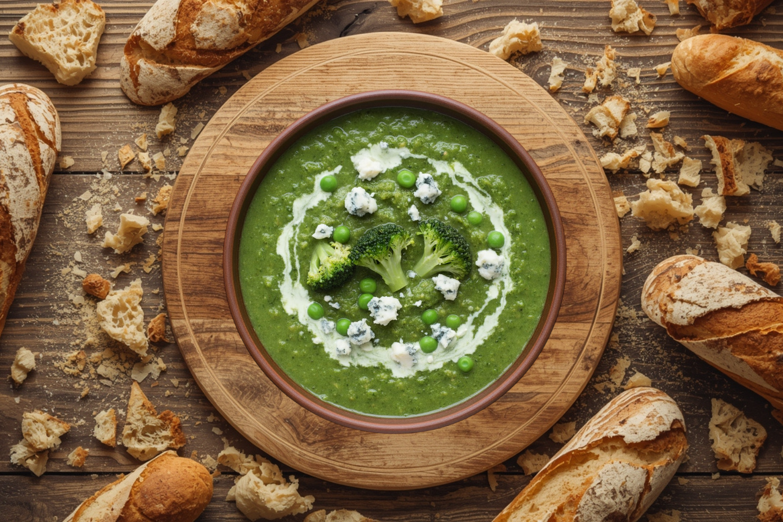 Broccoli and peas get a kick from Stilton cheese, garlic and herbs in this classic British soup