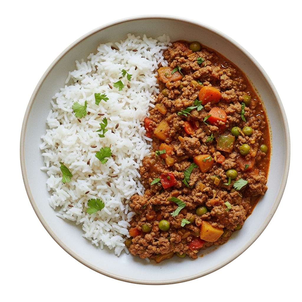 A vibrant Indian curry of spiced ground beef and vegetables
