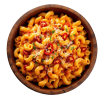 Rich, cheesy sauce with a spicy kick of red pepper, chilli, Macaroni