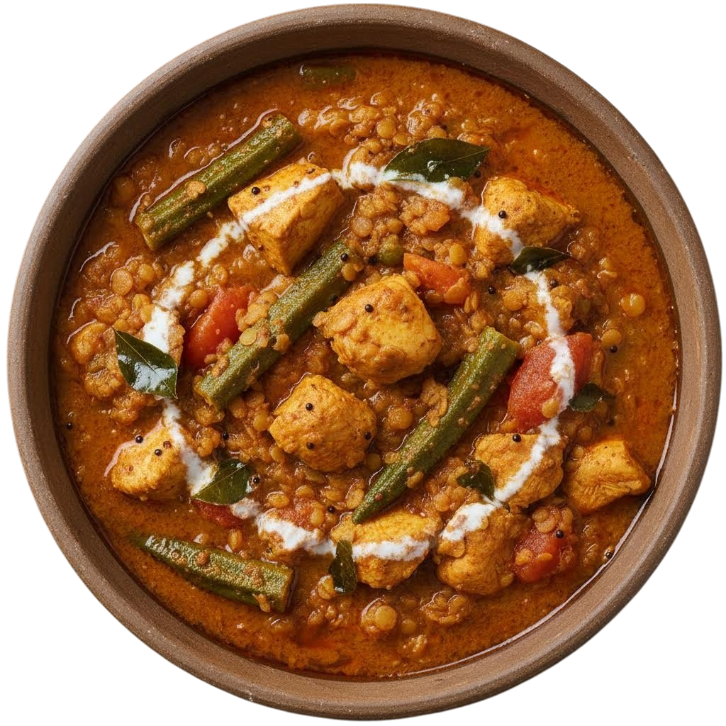 Water, Onion, Tomato [Diced Tomatoes, Tomato Juice, Citric Acid (E330)], Lentil Red Split [May Contain (#GLUTEN#), (#SOYA#)], Chicken from UK, EU & Brazil (8%), Rapeseed Oil, Ginger Puree, Garlic Puree, Salt, Lemon Juice [Lemon Juice (99.9%), Potassium Metabisulphite E224 (#SULPHITES#)] , Fenugreek Seed, Coriander Chopped, Tamarind Paste [Water, Tamarind, Salt, Sugar], Chilli Red, Garam Masala [Coriander, Cumin, Black Pepper, Cassia Cinnamon, Dill, Ginger, Cloves], Turmeric Ground, Coriander Ground, Chilli Ground.