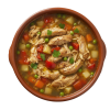 Chicken chunks, tomatoes, roasted peppers, lentils, garlic, herbs, with Smokey paprika notes.