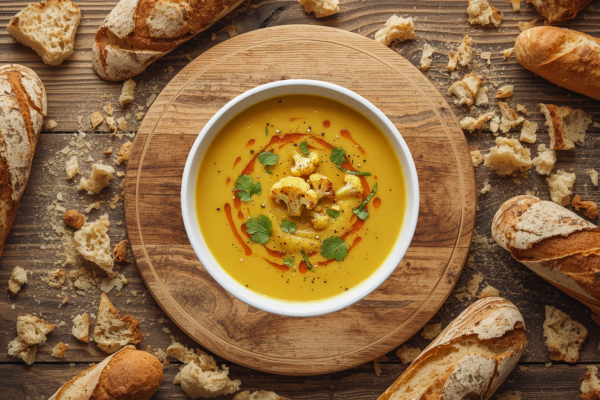 Water, Cauliflower, Potato, Onion, Carrot, Coconut Milk [Coconut Kernel Extract (17%), Water], Natural Vegetable Bouillon [Dried Glucose Syrup, Salt, Yeast Extracts, Onion Powder, Carrot Powder, Tomato Powder, Sunflower Oil, Natural Flavouring], Sunflower Oil, Maize Starch, Ginger Puree, Garlic Puree, Lemon Juice [Lemon Juice (99.9%), Potassium Metabisulphite E224 (#SULPHITES#)] , Salt, Turmeric Ground, Cumin Seed, Coriander Chopped, Black Pepper Ground.