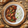 Savoury Brazilian black bean stew with chicken and bacon, simmered with smokey and hearty flavour.