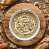 A rustic, comforting blend of savoury chicken, smoky ham, and earthy thyme in a creamy soup.