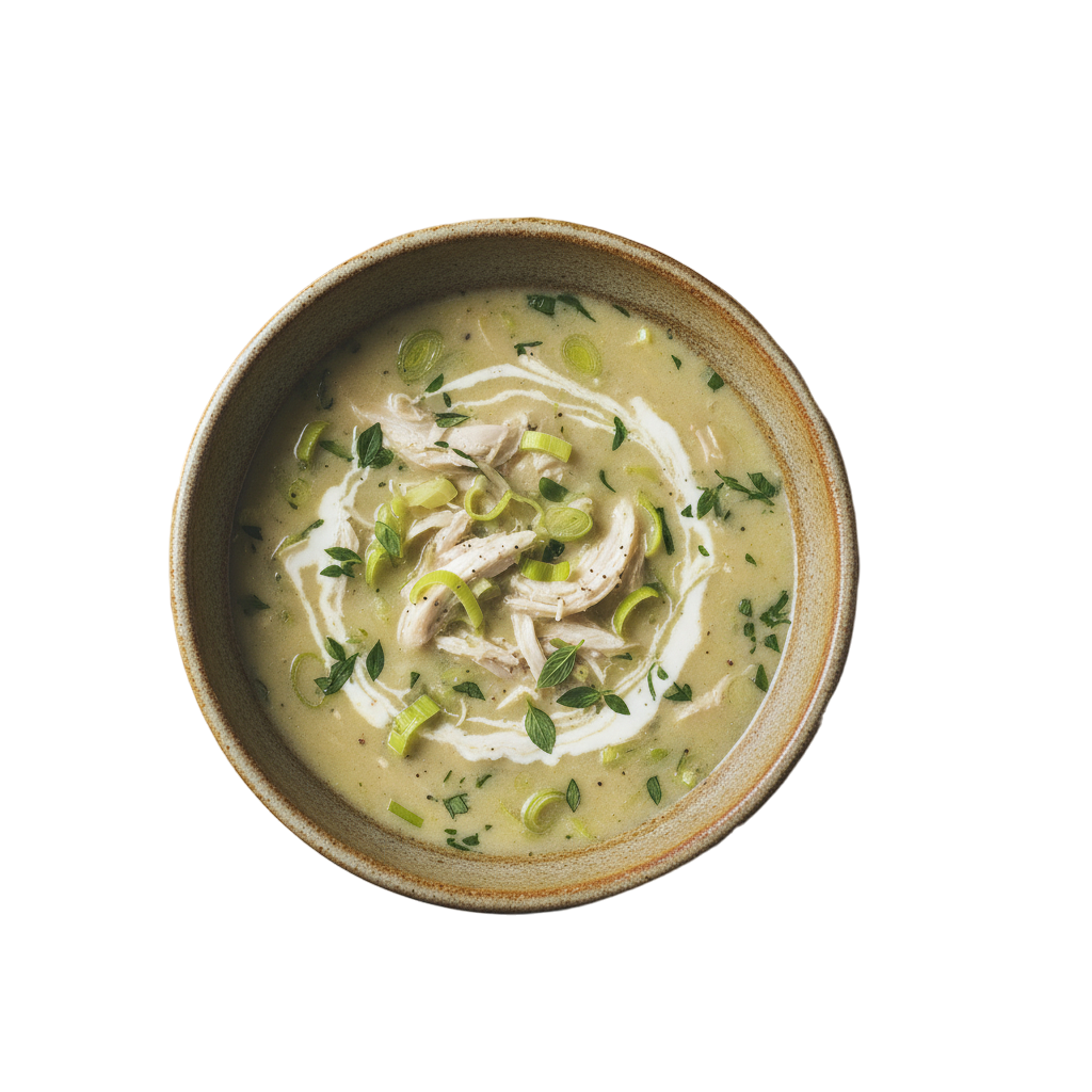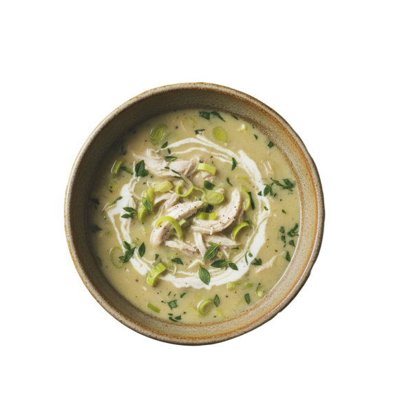 A warm, creamy comfort with tender chicken and the delicate, mild flavour of leeks.