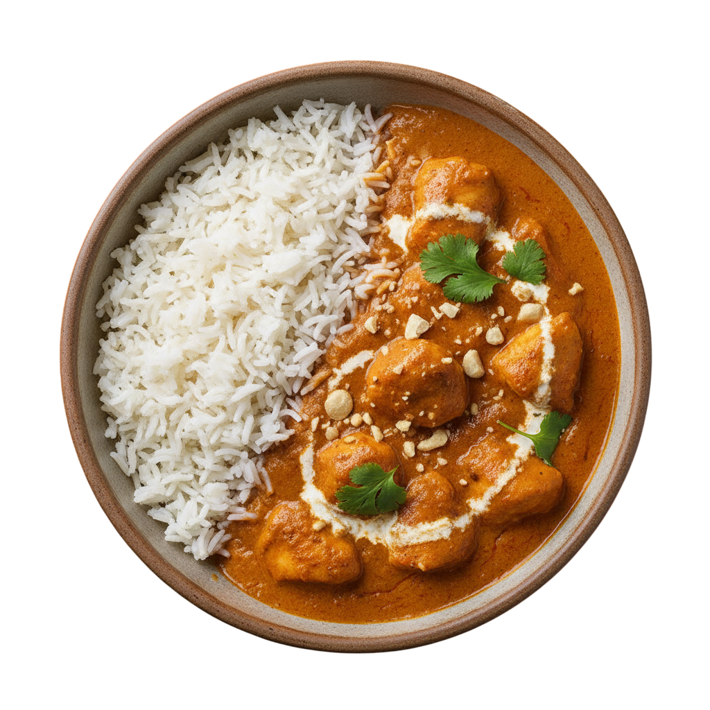 A velvety, spiced tomato and butter gravy embraces tender chicken.