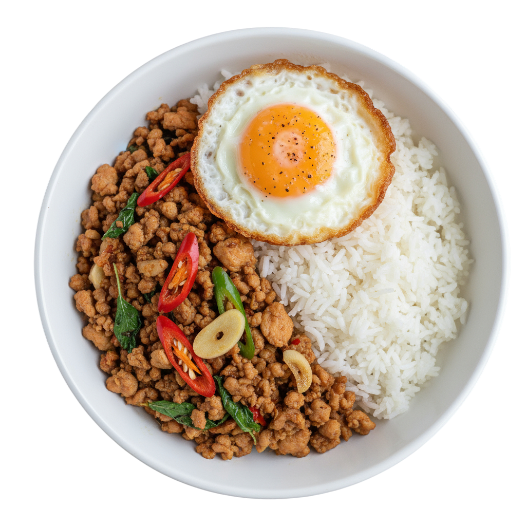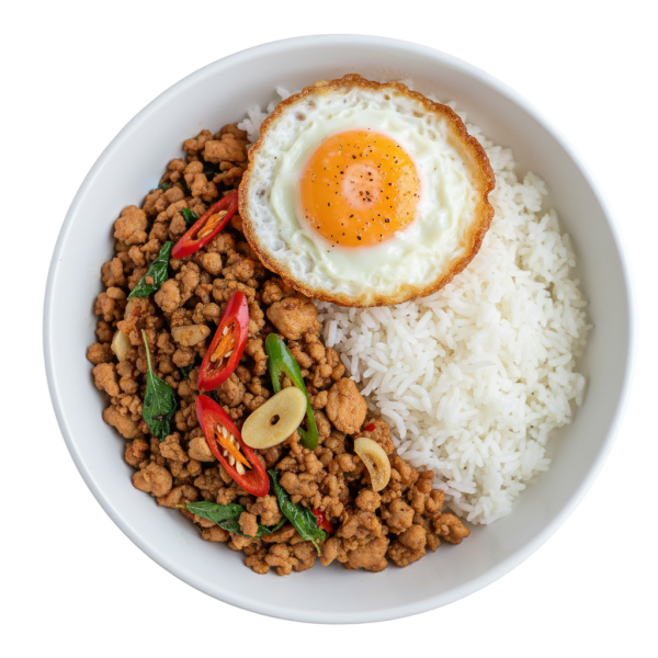 An iconic, spicy Thai street food with stir-fried chicken, basil, and chilies.