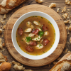 Water, Potato, Chicken from UK, EU & Brazil [Chicken (98%), Water, Salt] (7%), Savoy Cabbage, Carrot, Bacon Smoked, made with UK & EU Pork [Pork, Water, Salt, Preservatives (Sodium Nitrate, Potassium Nitrate), Antioxidant (Sodium Ascorbate)] (5.6%), Swede, Pearl Barley (#GLUTEN#), Onion, Pea Yellow Split, Chicken Bouillon [Dried Glucose Syrup, Yeast Extracts, Salt, Flavouring, Onion Powder, Sugar, Chicken Bone Stock, Rapeseed Oil], Lentil Red Split [May Contain (#GLUTEN#), (#SOYA#)], Maize Starch, Natural Vegetable Bouillon [Dried Glucose Syrup, Salt, Yeast Extracts, Onion Powder, Carrot Powder, Tomato Powder, Sunflower Oil, Natural Flavouring], Mace Ground, Black Pepper Ground.