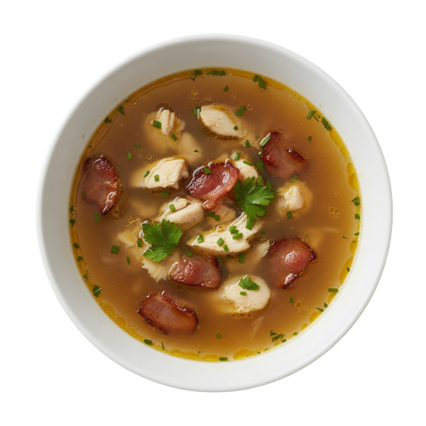 An enticing, smokey, and comforting soup with tender chicken and diced bacon.