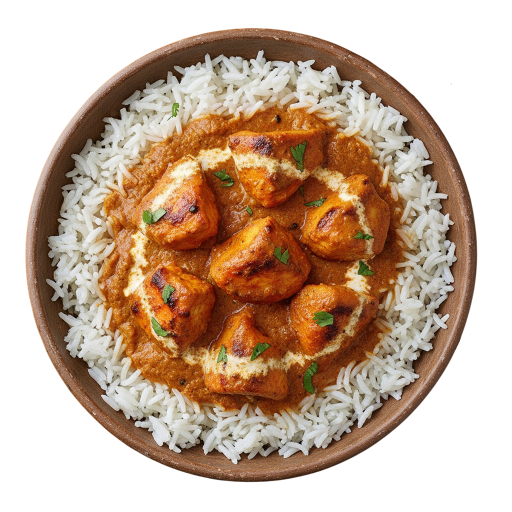 Grilled chicken pieces in a creamy, spiced tomato sauce, a beloved British-Indian fusion dish.
