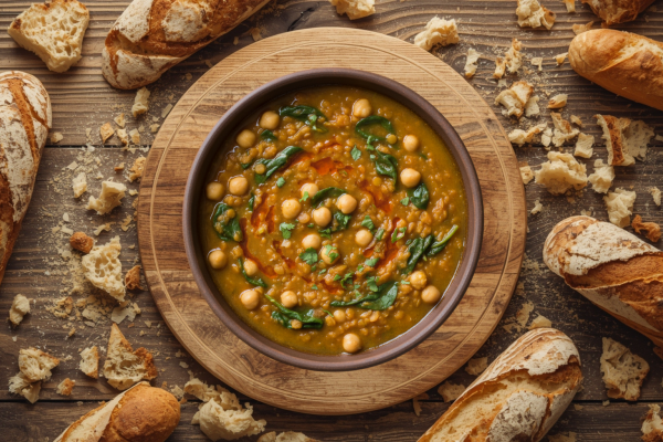 Creamy spiced lentil and spinach soup, a hearty and flavourful one-pot meal.