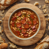 Water, Cannellini Beans, Carrot, Onion, Tomato [Diced Tomatoes, Tomato Juice, Citric Acid (E330)], CHORIZO [XXXXXXXXXXXX] (4.3%), Tomato Paste, Bacon [Xxxxxxxxxxxx] (2.9%), Maple Syrup [Xxxxxxxxxxxx], Garlic Puree, Chicken Bouillon (Roast) [Chicken Stock (Water, Chicken Stock), Flavourings, Glucose Syrup, Salt, Yeast Extract], Maize Starch, Lemon Juice [Lemon Juice (99.9%), Potassium Metabisulphite E224 (#SULPHITES#)] , Butter (#MILK#), Dark Balsamic Vinegar [Wine Vinegar (#SULPHITES#), Concentrated Grape Must (#SULPHITES#), Colour ((#SULPHITES#) Ammonia Caramel), Antioxidant (#SULPHUR DIOXIDE#)], Smoked Paprika.