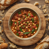 Chickpea with tomato, vegetable and chorizo seasoned with garlic and smoked paprika