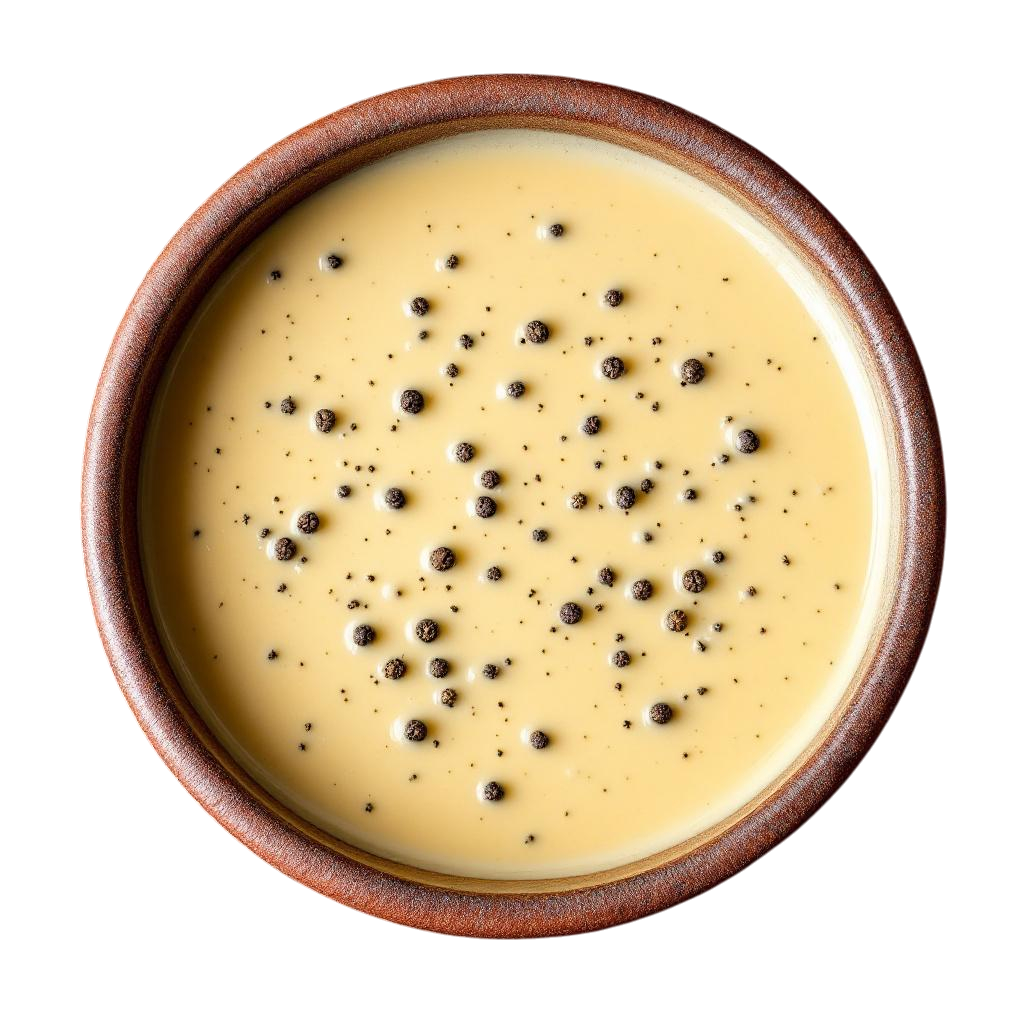 A savory, peppery blanket of comfort food made from milk and meat stock.