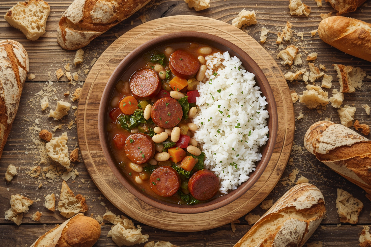 A rich, smokey Spanish-style stew with hearty white beans and vibrant vegetables.