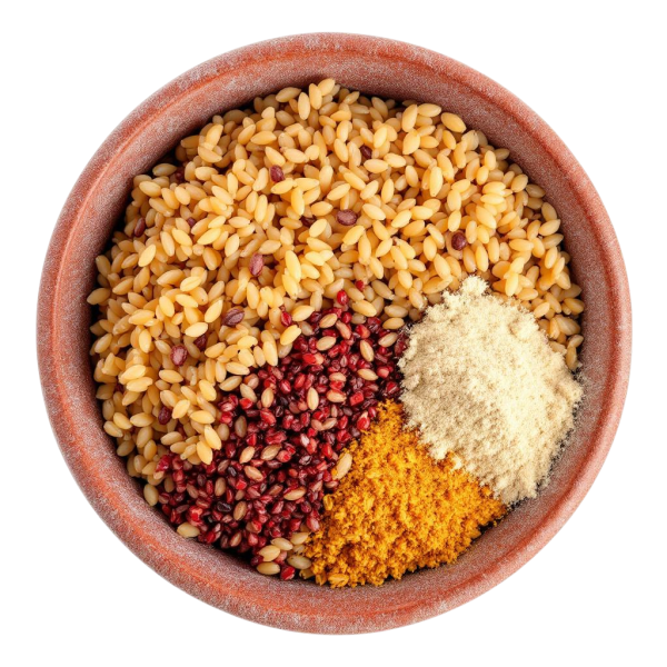A hearty, nutty grain blend, savoury from vegetable stock, for a flavourful side.