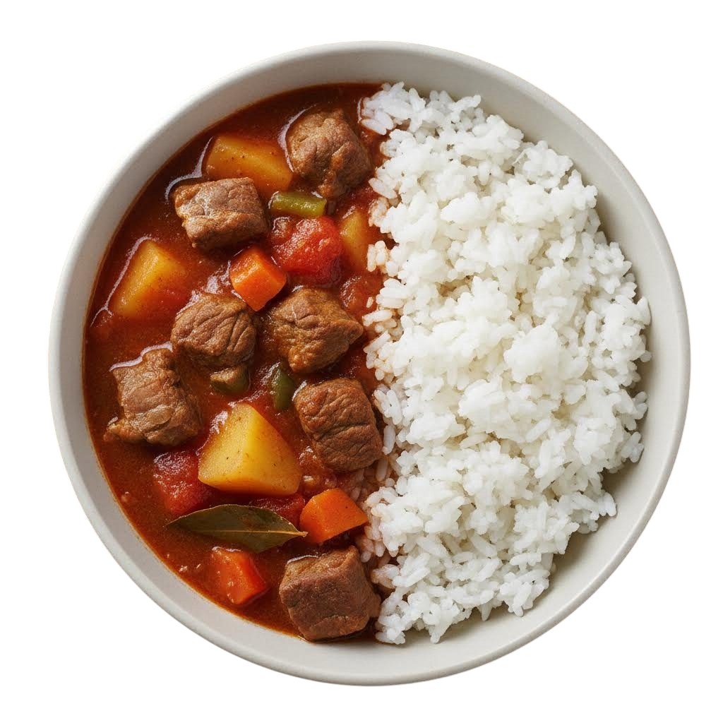 Filipino beef stew braised in a rich, tangy tomato-soy sauce with tender vegetables.