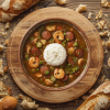 Water, (#CELERY#), Pepper Red, Onion, Chicken from UK, EU & Brazil (4.3%), CHORIZO [XXXXXXXXXXXX] (2.9%), Tomato Paste, Maize Starch, Rapeseed Oil, Chicken Bouillon, Garlic Puree, Chicken Bouillon [Dried Glucose Syrup, Yeast Extracts, Salt, Flavouring, Onion Powder, Sugar, Chicken Bone Stock, Rapeseed Oil], Lemon Juice [Lemon Juice (99.9%), Potassium Metabisulphite E224 (#SULPHITES#)] , Creole Spice Mix [Xxxxxxxxxxxx], Parsley, Cumin Seed, Thyme, Smoked Paprika, Oregano, Bay Leaf, Chilli Ground. Allergen Information