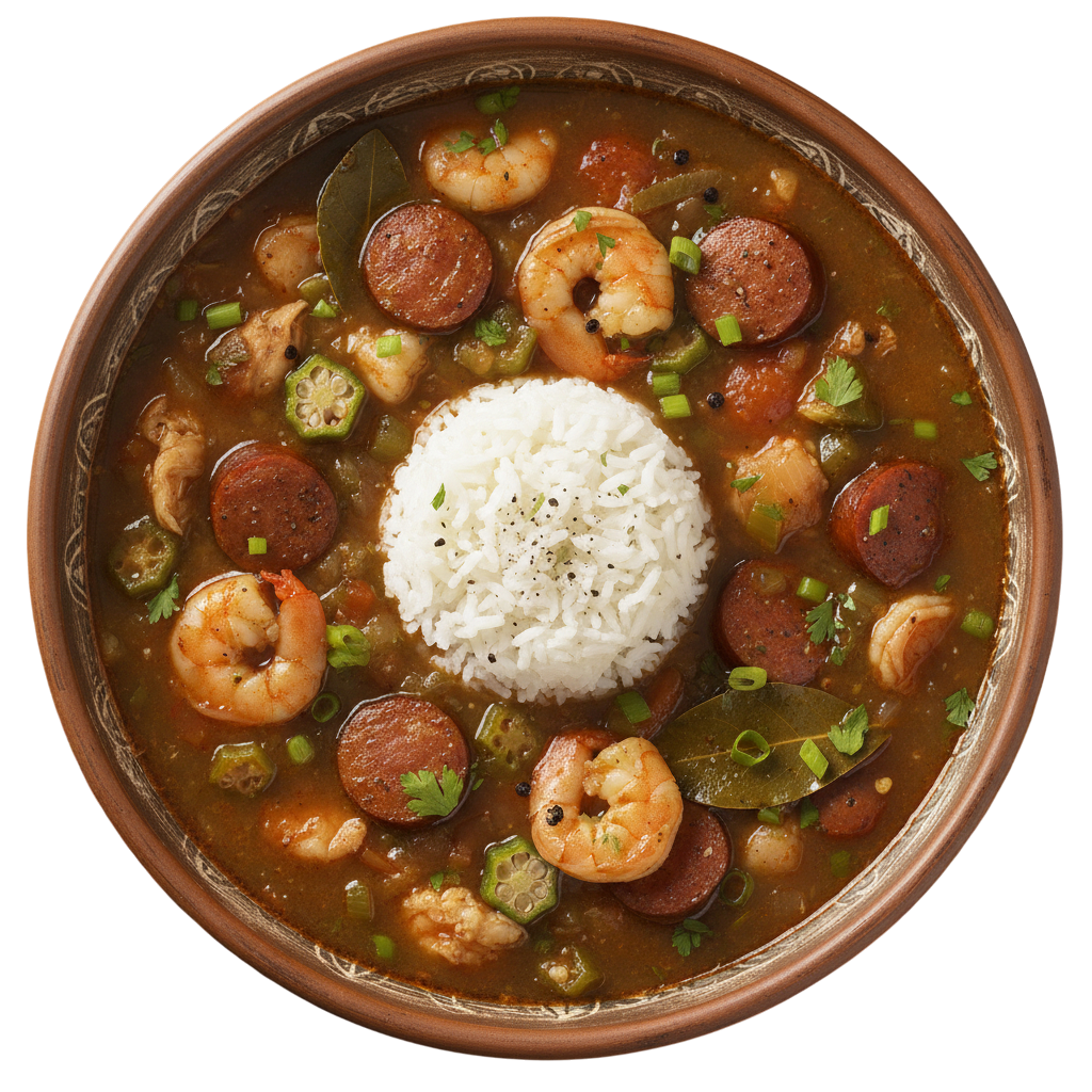 A flavorful, tomato-based gumbo with chicken, holy trinity, and rich Creole spices.