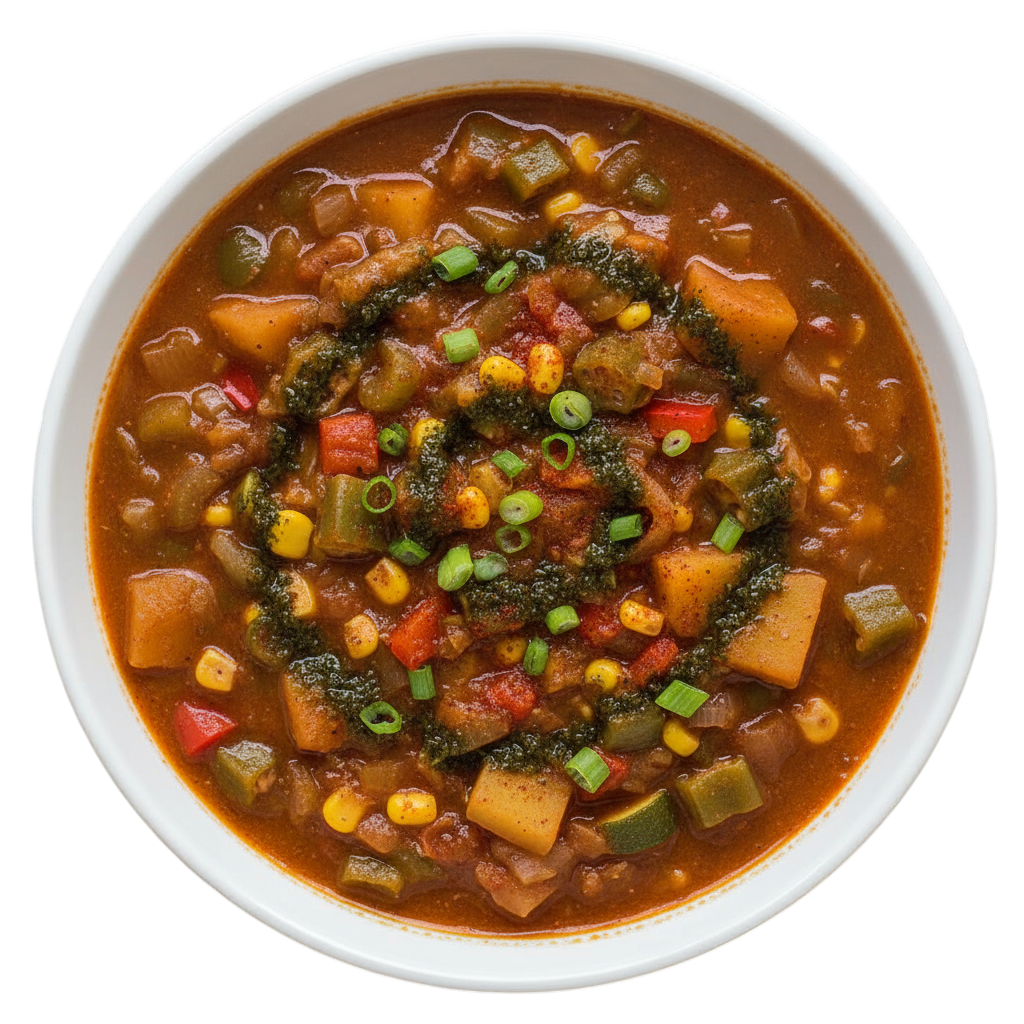 A thick, savoury vegetable stew with the "holy trinity" of celery, onions, and bell peppers.