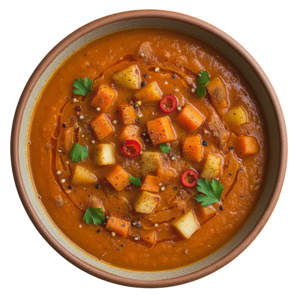 A creamy, warming blend of earthy vegetables and aromatic spices.