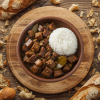 Braised pork simmered in soy sauce, vinegar, and garlic, creating a tangy and savory delight.