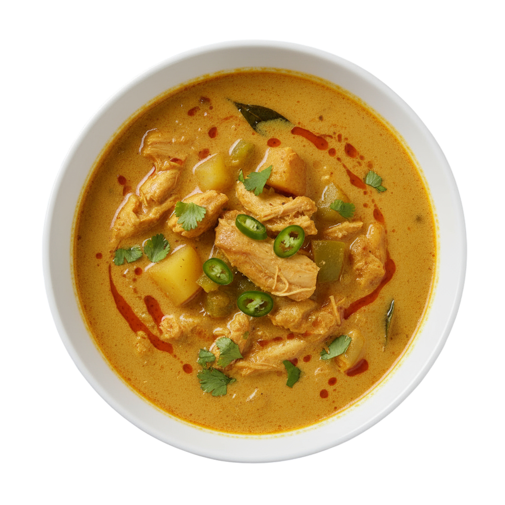 A rich, aromatic broth with chicken, spices, and coconut milk, a taste of Indo-Portuguese Goa.