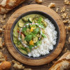 A spicy, fragrant green curry of vegetables in a rich, creamy coconut sauce.