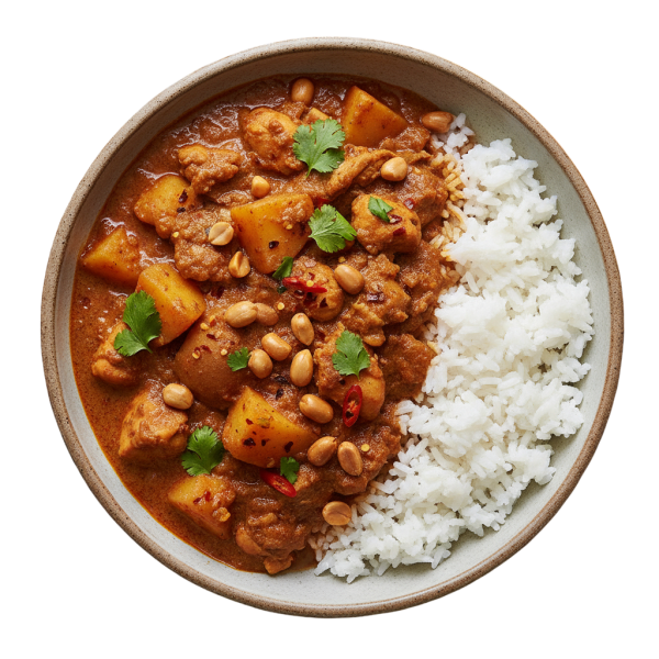 A mild, fragrant Thai curry with Indian spices, tender chicken, and creamy coconut milk.