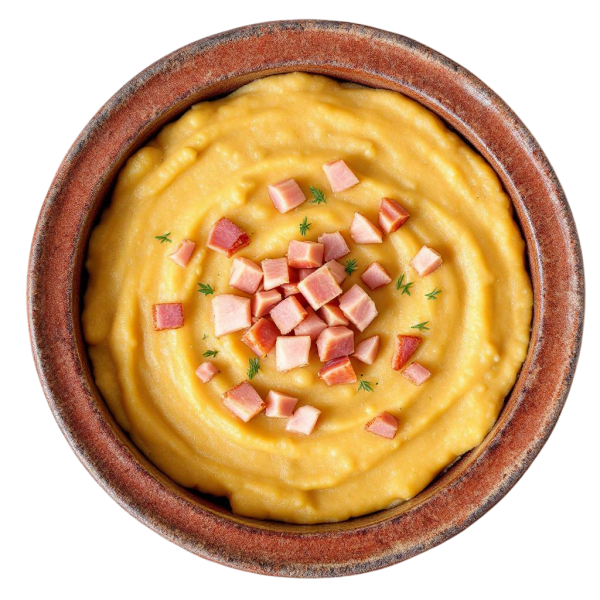 A thick, savoury spread of yellow split peas cooked in ham stock, perfect with meats.