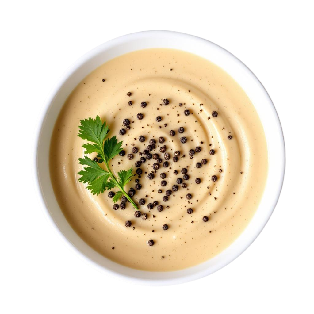 A creamy, rich, and pungent sauce with a warm kick of black pepper, perfect for steak.