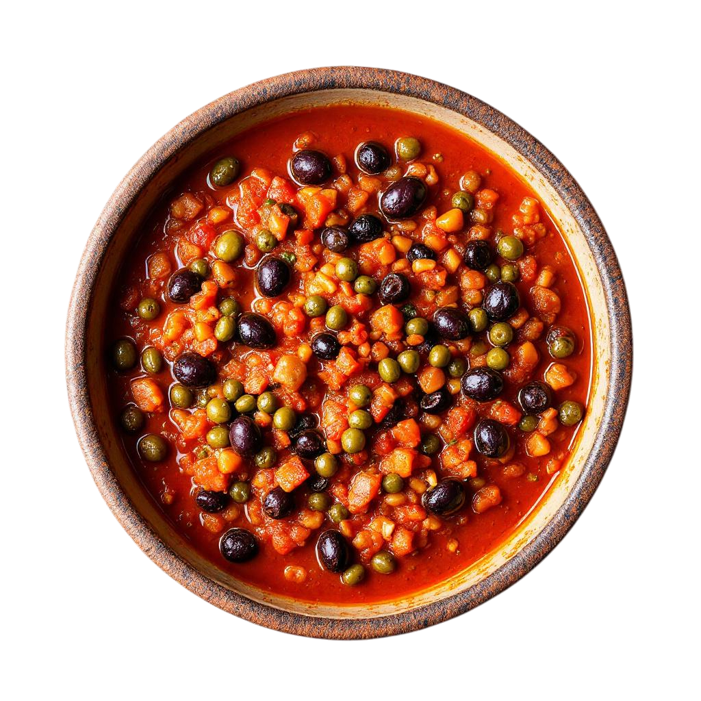 A spicy, pungent Neapolitan sauce made with tomatoes, olives, and capers.