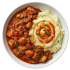 Chicken from UK, EU & Brazil [Chicken (98%), Water, Salt] (33%), Tomato [Diced Tomatoes, Tomato Juice, Citric Acid (E330)], Onion, Butter Beans, Pepper Red, Tomato Paste, Chicken Bouillon, Chilli Red, Rapeseed Oil, Maize Starch, Garlic Puree, Lemon Juice [Lemon Juice (99.9%), Potassium Metabisulphite E224 (#SULPHITES#)] , Vinegar Red Wine , Salt, Ginger Puree, Demerara Sugar, Smoked Paprika, Turmeric Ground, Curry Powder [Coriander, Turmeric, Cumin, Fenugreek, Cardamom, Chilli Powder, Black Pepper, Fennel], Black Pepper Ground, Mace Ground, Cumin Seed, Cinnamon Ground.