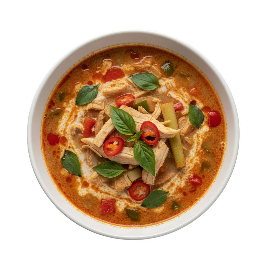 A flavorful fusion of spicy red curry and creamy coconut milk with tender chicken.