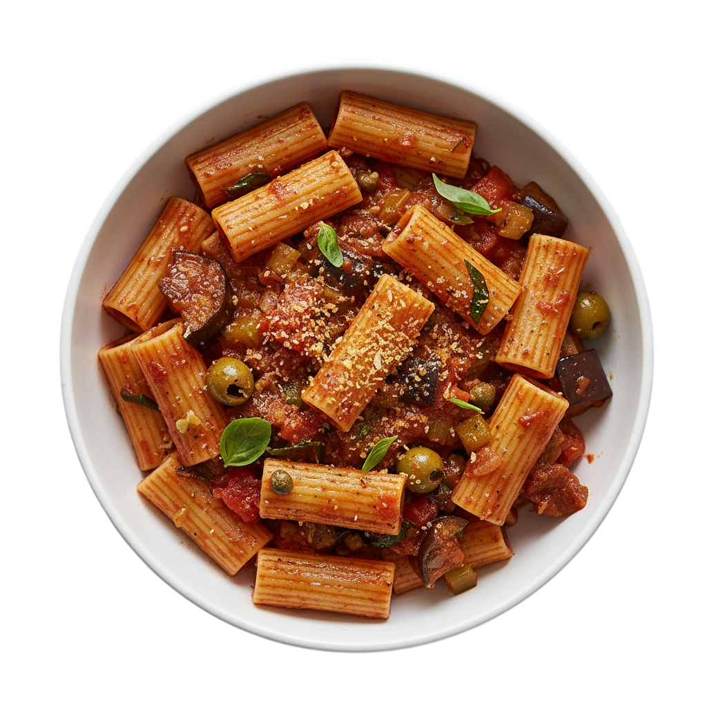 A rich, tangy Sicilian sweet-and-sour aubergine stew with olives, capers, and tomatoes,