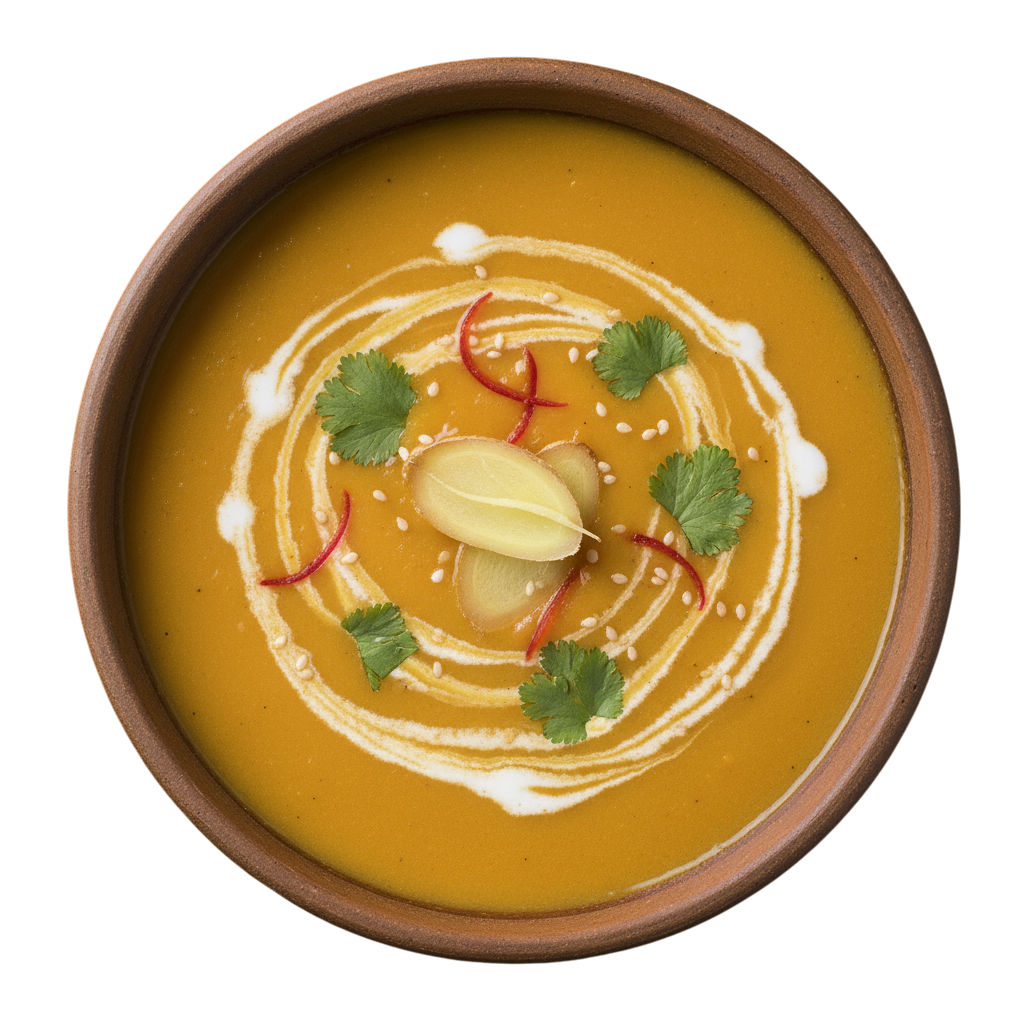 A zesty, creamy blend of sweet carrots, spicy ginger, and silky coconut milk.