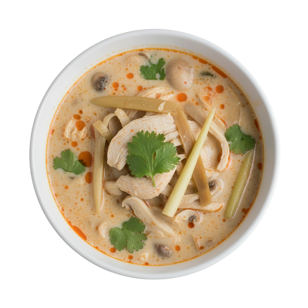 A rich Thai coconut soup with chicken, fragrant galangal, lemongrass, and lime.