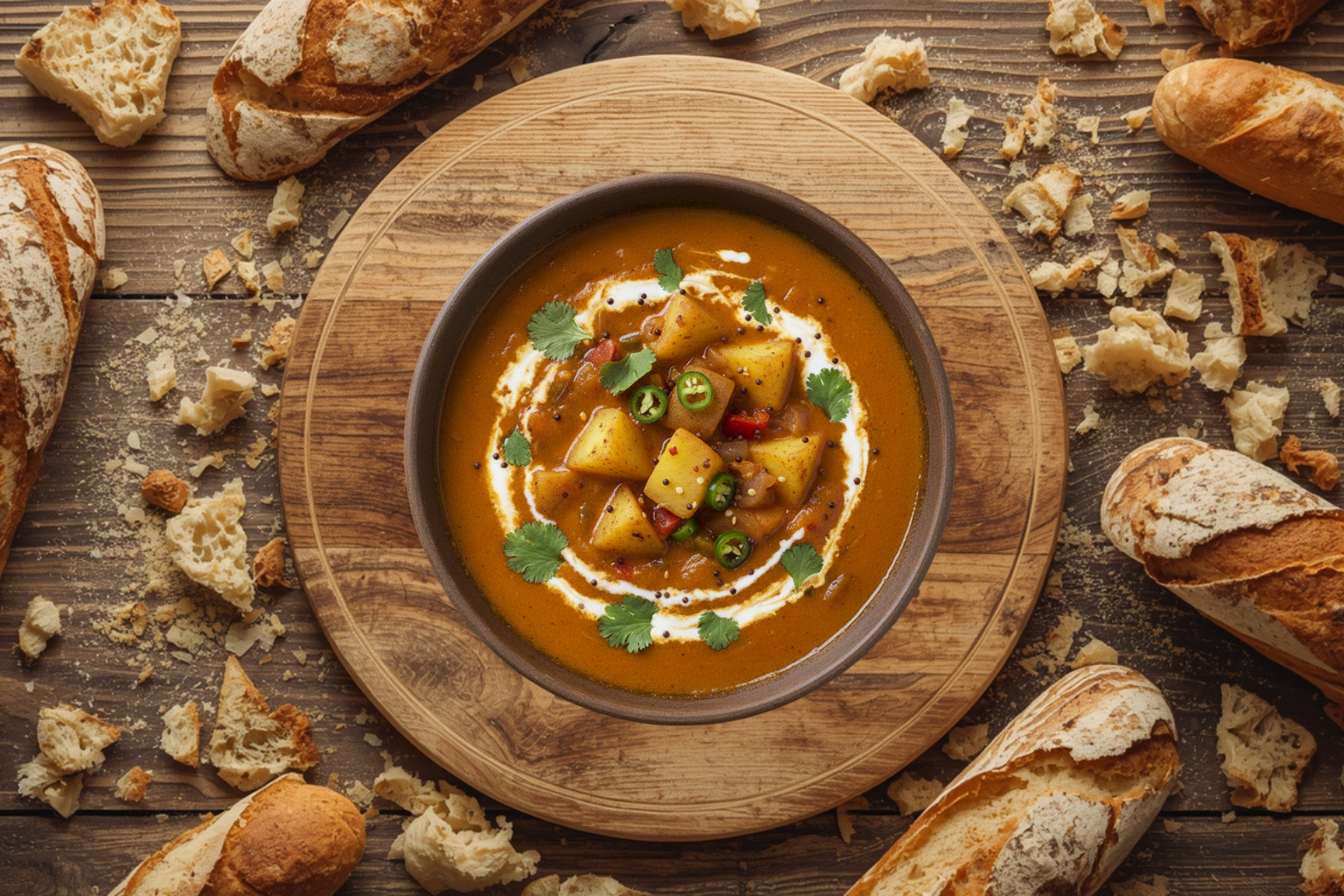 Creamy, spiced potato and tomato soup inspired by the popular Indian dish.