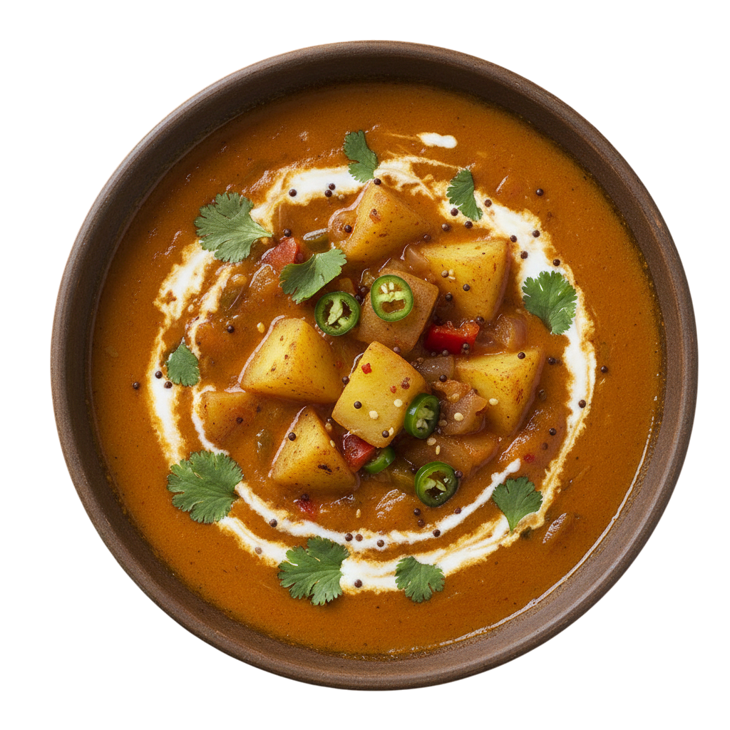 Creamy, spiced potato and tomato soup inspired by the popular Indian dish.