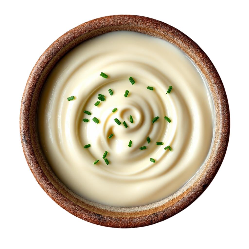 A velvety, plant-based emulsion, mimicking rich mayonnaise without the eggs.